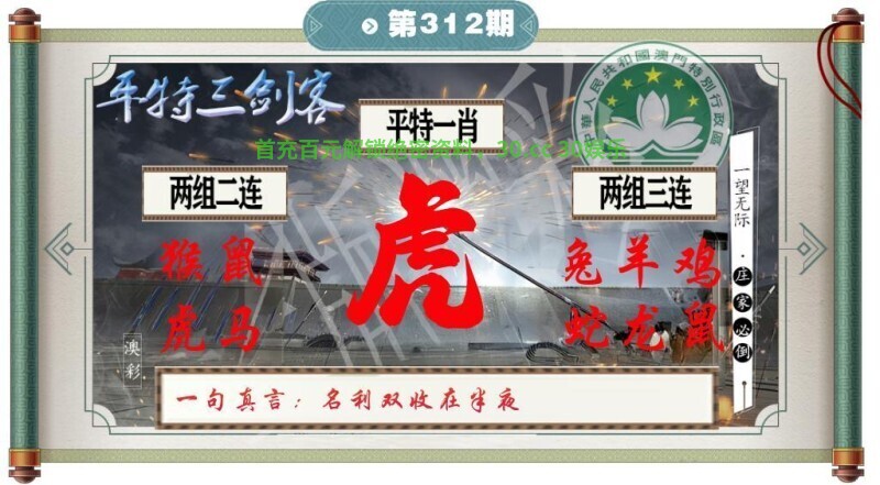 | 312期:绝杀三肖❀【羊兔猪】开:龙14准 |