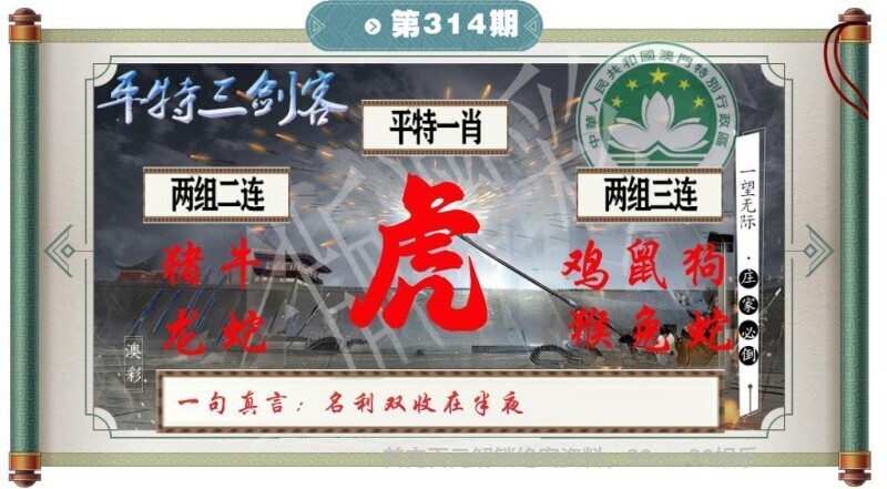 | 315期:绝杀三肖❀【猴鼠蛇】开:虎04准 |