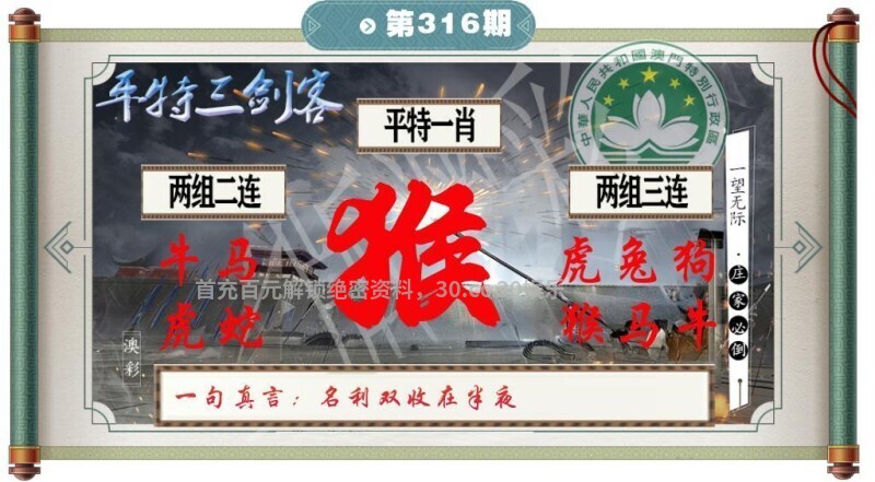 | 316期:家野三肖【野兽+羊马牛】开马24中 |